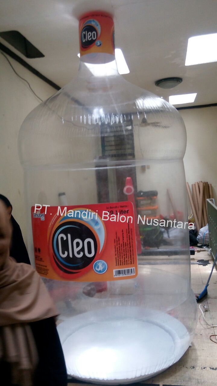 • Balon Galon Cleo pure water. Balon ini juga diproduksi menggunakan bahan pvc sebanyak 2 unit. agak sedikit berbeda dengan dua jenis balon botol diatas. balon galon ini diproduksi dengan menggunakan konsep balon tonjok atau Balon Samsak. yaitu balon yang bila anda pukul, dorong atau tendang balon tersebut akan jatuh kemudian berdiri sendiri