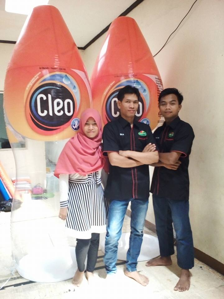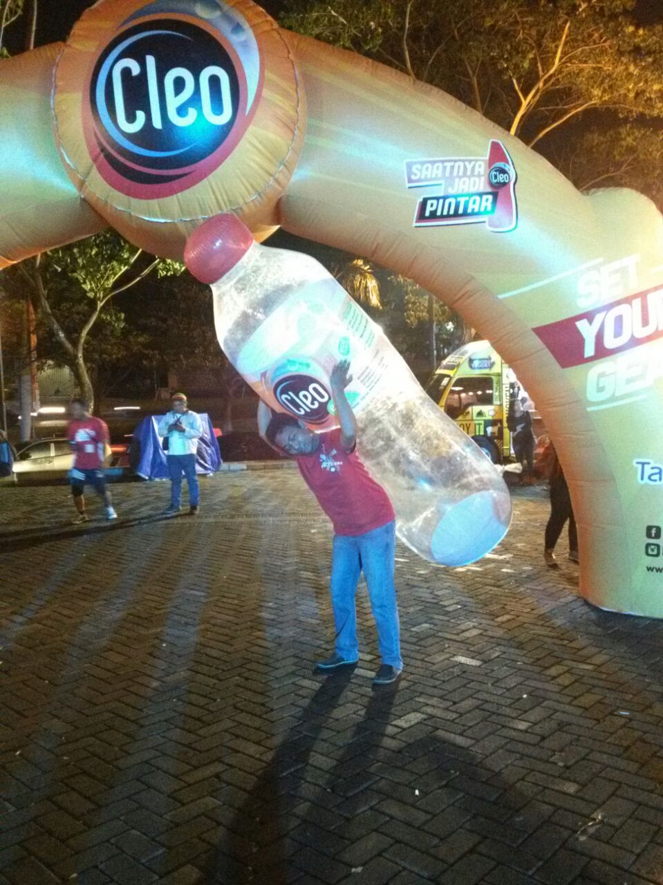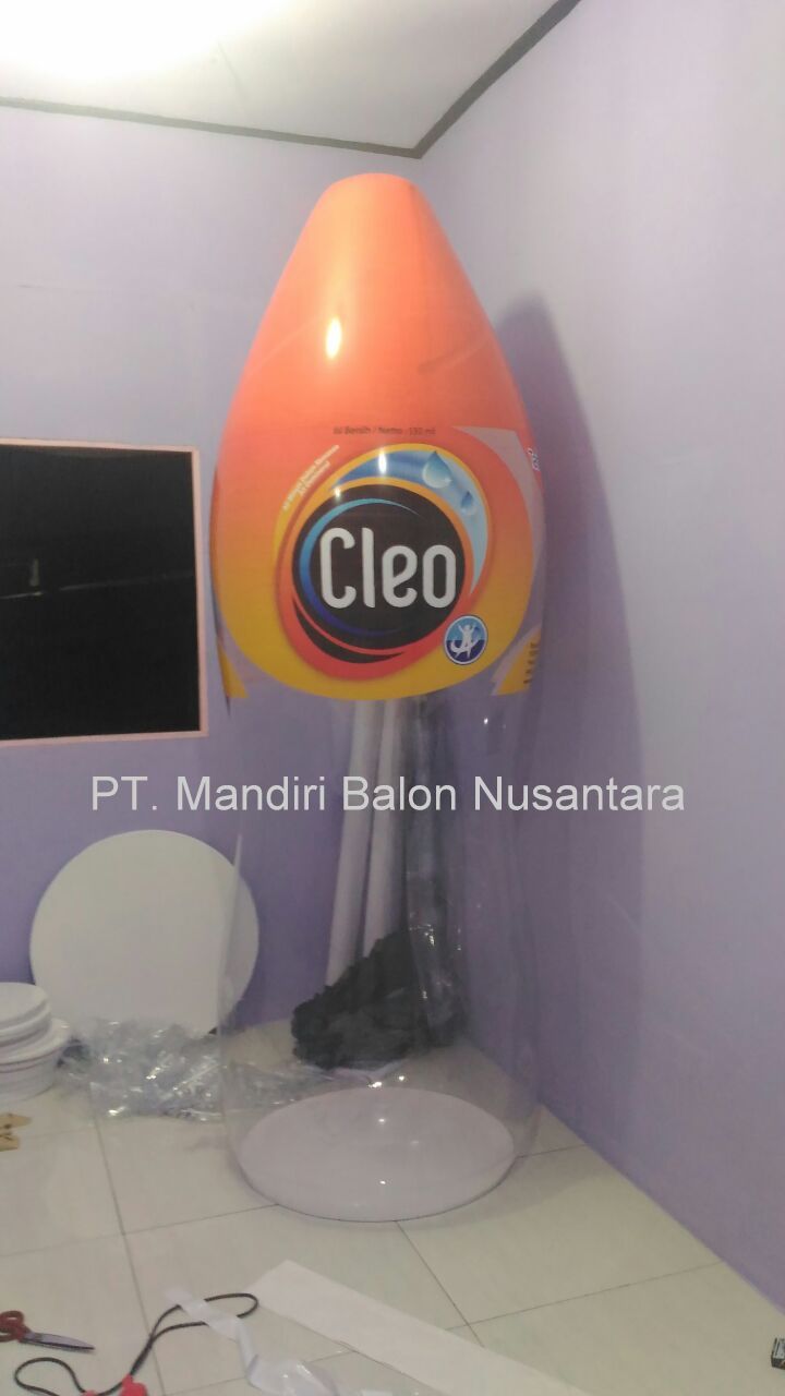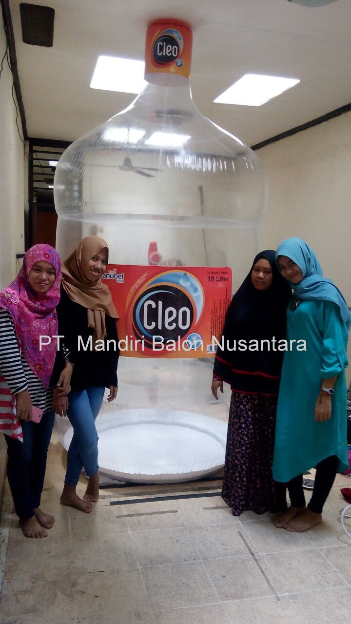 • Balon Botol Cleo klasik 330ml. balon ini diproduksi menggunakan bahan pvc sebanyak 2 unit dengan ukuran tinggi 2,5 m. dengan balon ini banyak perserta lomba yang menggunakannya sebagai ajang selfie – selfie yang secara tidak langsung membuat mereka lebih tau dan mengerti akan produk minuman cleo water dengan botol clasik 330 ml