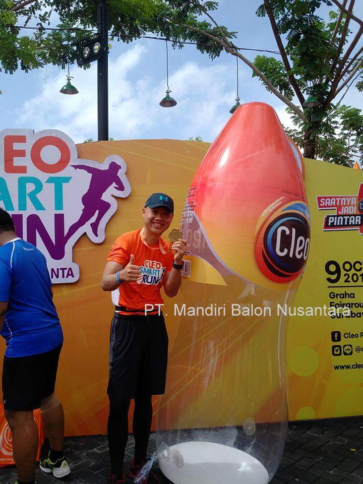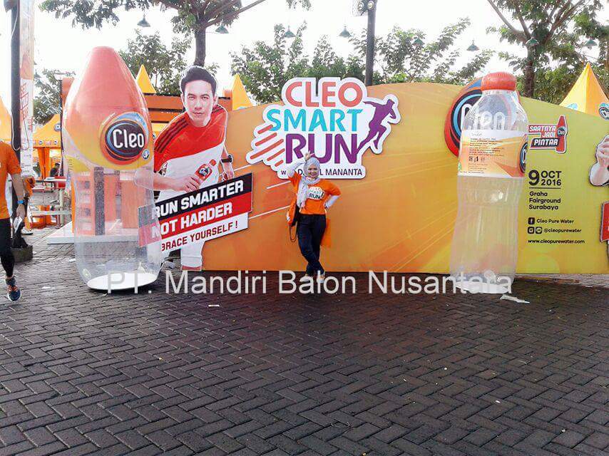 Satu Lagi Produk terbaru dari Pt. Mandiri Balon Nusantara yakni Balon Cleo Smart Run. Alhamdulillah kami dipercaya oleh PT Sariguna Primatirta atau Tanobel selaku Produsen minuman yaitu Cleo Pure water untuk mensupport dan mendukung kemeriahan acara Cleo Smart Run yang diadakan di surabaya, dengan memproduksi atau pengadaan Balon Gate sebanyak 1 unit, Balon Botol 4 unit dan Balon Galon 2 unit. dan dengan bangga kami dapat memenuhi tanggung jawab dengan memproduksi balon tersebut sesuai permintaan dan tepat waktu.