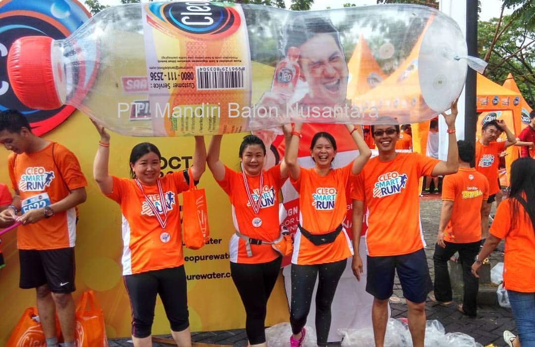 Mandiri Balon dengan Bangga Mensupport Kemeriahan Acara Cleo Smart Run di Surabaya Dengan Balon Gate, Balon Botol dan Balon Galon yang dipesan oleh Cleo Pure Water.